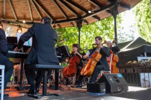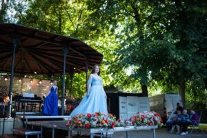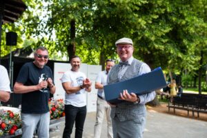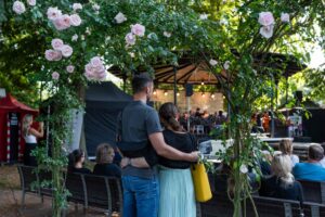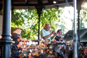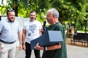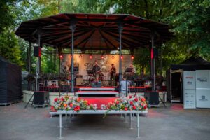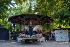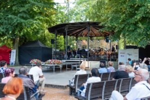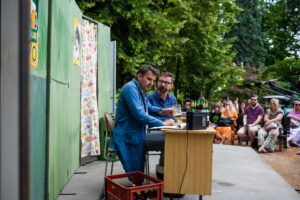 hrách. V 15 hodin se park změnil v divadelní sál a na programu bylo divadelní představení Audience Václava Havla v podání Divadelního studia Viktorka Holešov. Zlatým hřebem sobotního programu bude večerní koncert světoznámého trumpetisty Laca Décziho a jeho kapely Celula New York.