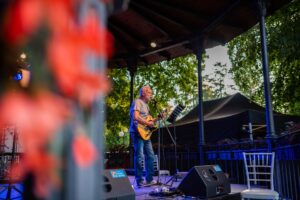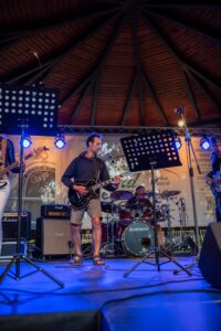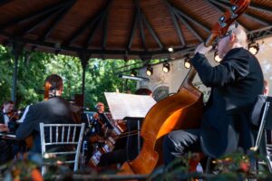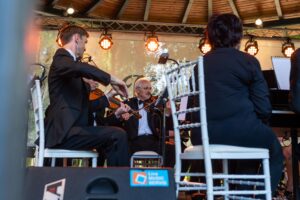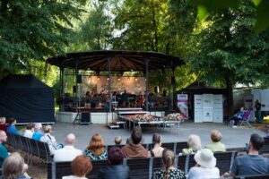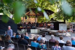 Páteční program vyvrcholil v Jiráskových sadech vystoupením filharmonie Hradec Králové, po kterém následoval energický koncert blues-rockové skupiny Bludný Holanďan.
